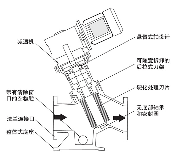 本切割機(jī)是雙軸結(jié)構(gòu),低轉(zhuǎn)速、高扭矩切割機(jī)。設(shè)備每個軸上安裝了交叉的刀片和隔墊,真空實現(xiàn)了“自動式”固體粉碎。雜物一旦被卷入了緩慢轉(zhuǎn)動的刀片,就再無逃脫的可能,不論是破布、繩索、塑料、飲料罐、長筒林、木頭和各種橡膠,都將被機(jī)器輕松切碎,功能強(qiáng)大,但是不浪費(fèi)能源。